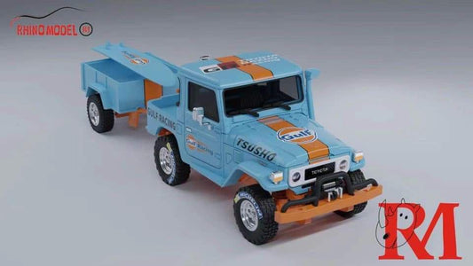 Rhino Model 1/64 Toyota Land Cruiser FJ40 + Trailer Set - Gulf Livery